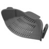The Snap N’ strain’s universal design will take the strain out of straining. This top quality heat-resistant, silicone colander is the newest, most practical way to get your food strained thoroughly while avoiding transferring the food out of the pot. The Snap N’ Strain is flexible enough to fit into nearly all pots, pans, and bowls. It snaps on neatly with two clips. The clips’ strong grip will keep it safely attached while in use and can be left attached to the pot while cooking. Once snapped the pot can be tilted over a sink or bowl and the Snap N’ Strain will do its magic. The liquids will be poured out while the food remains in the pot, even with heavier foods like potatoes.