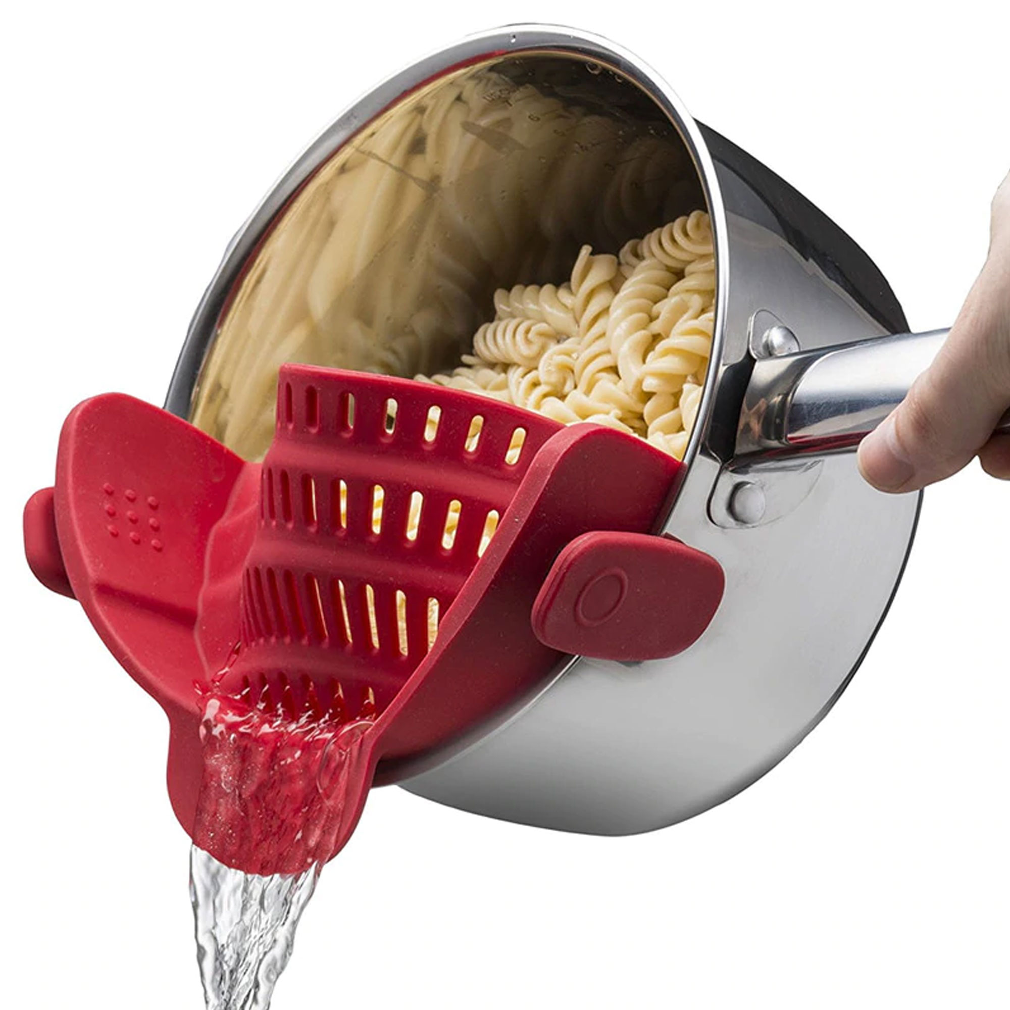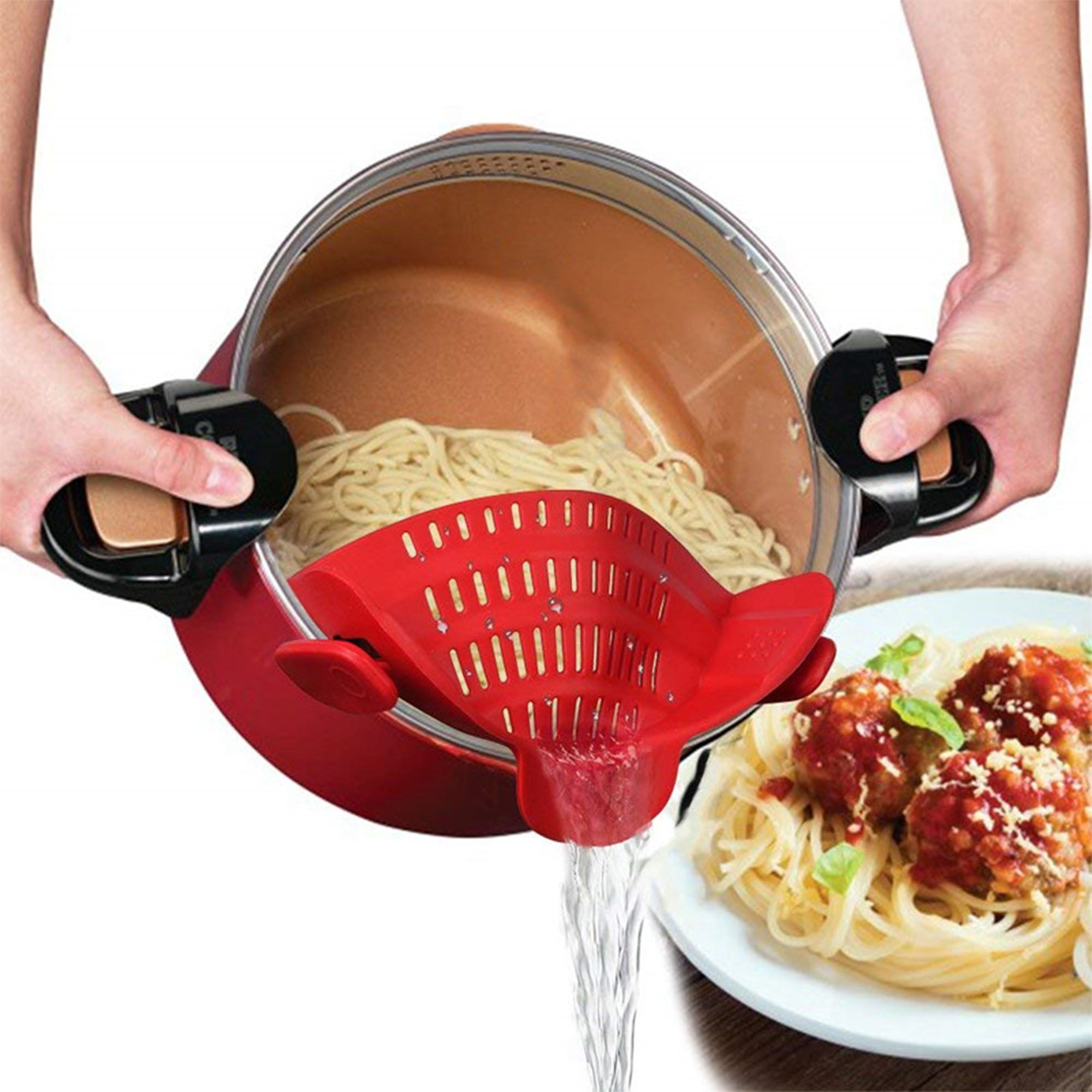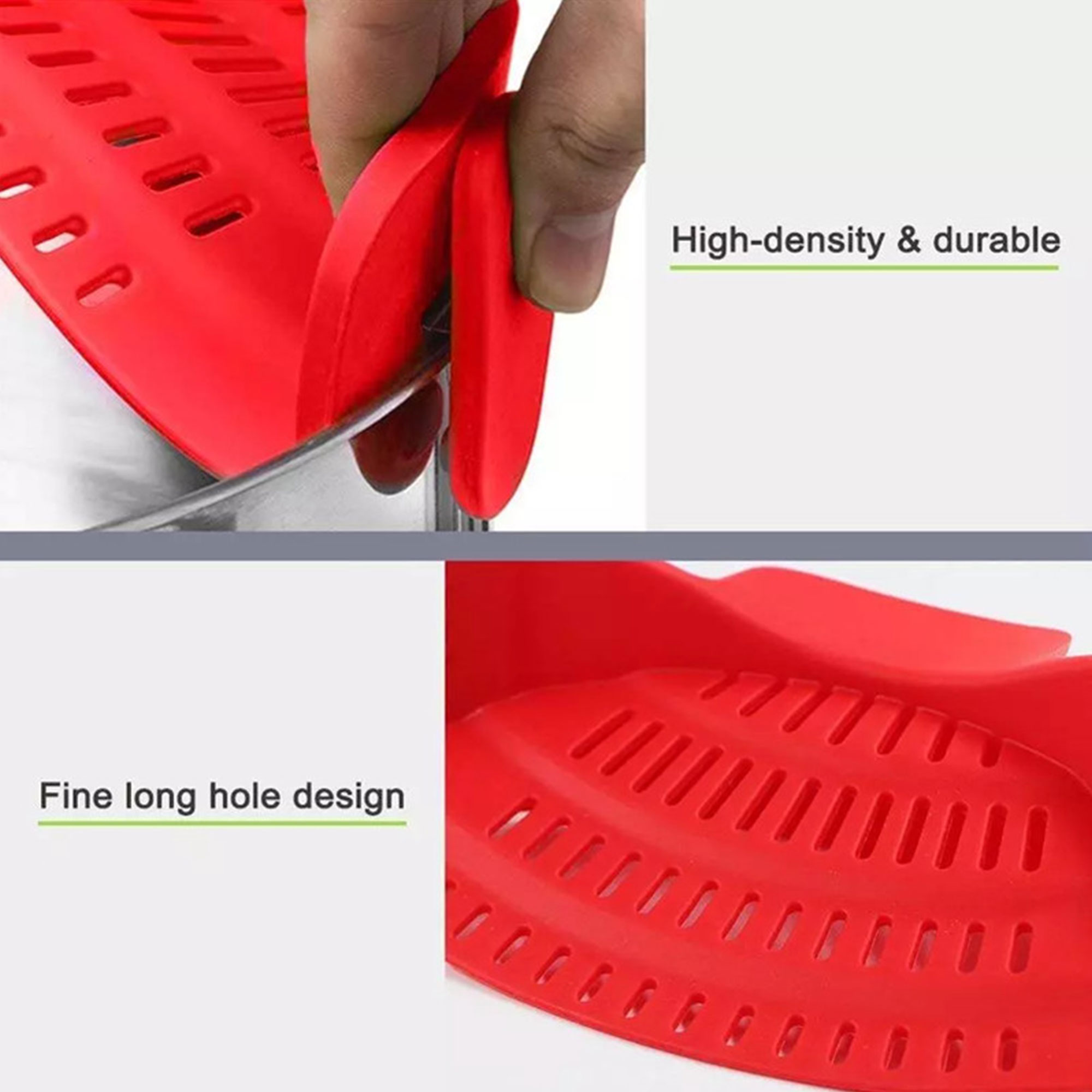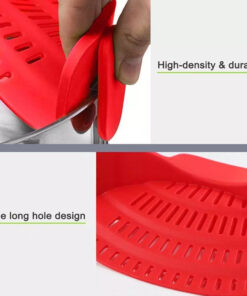 • ✔️MATERIAL: Our strainer is made of safe and non-toxic silicone, 100% food-grade. The strainer fits for a pan. Please ensure it’s clamped tightly before draining